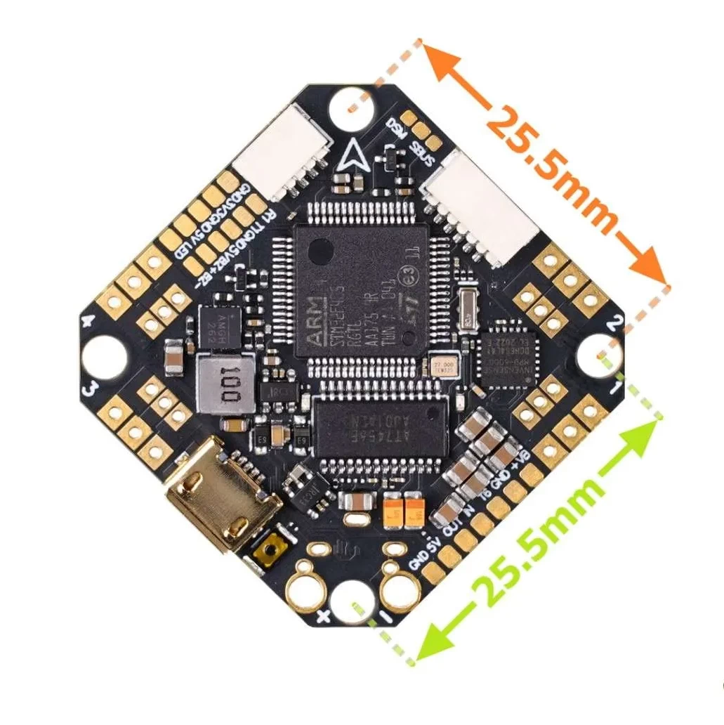 Для компактных сборок с низким профилем, таких как сверхлегкие 5-, 4-х и 3,5-дюймовые дроны, надежным вариантом является iFlight Beast с креплением 25,5 х 25,5 мм. Этот полетный контроллер особенно подходит для гоночных моделей, поскольку он имеет легкий вес и компактную конструкцию.