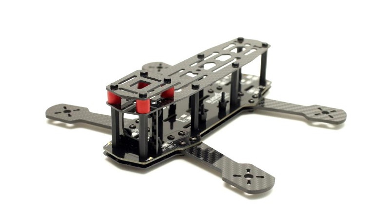 Прочность важнее всего для лучей дрона, поскольку они принимают на себя значительную часть нагрузки при аварии. Поэтому часто можно увидеть верхнюю, центральную и нижнюю пластины, вырезанные из более тонкого углеродного волокна толщиной 3 мм или даже 2 мм.