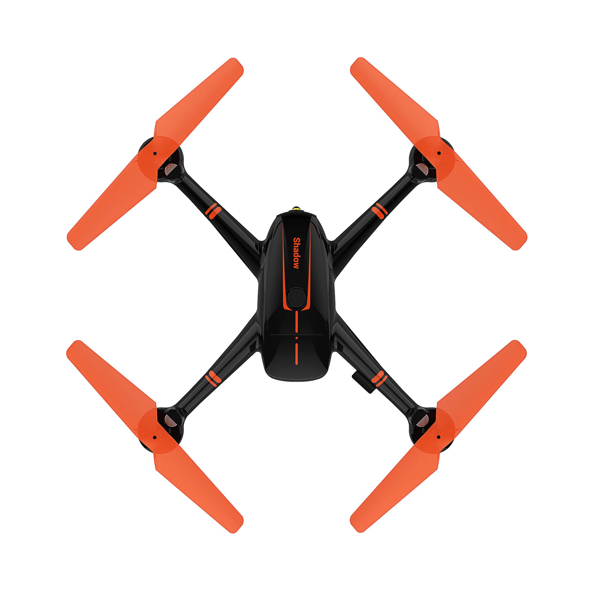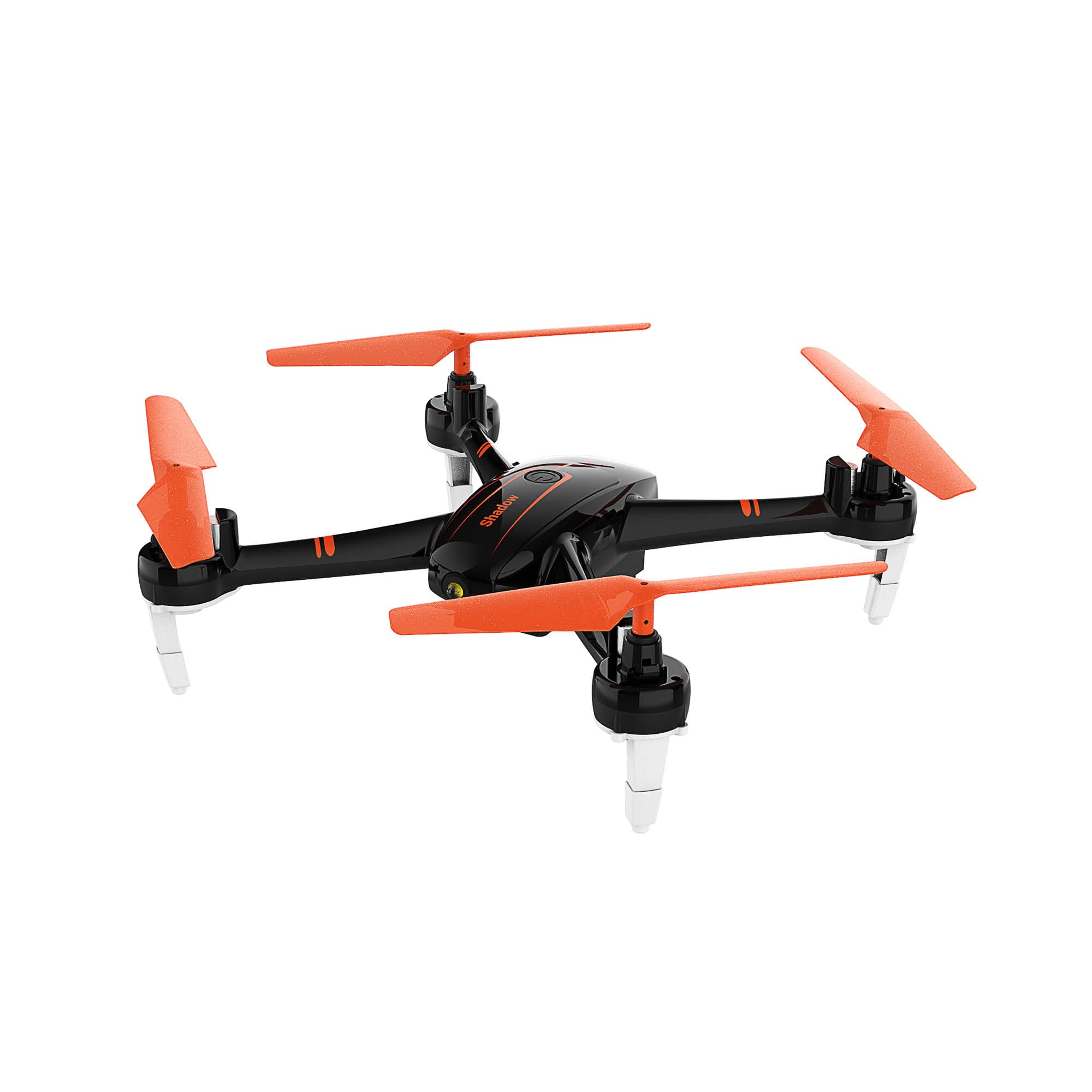 Дизайн квадрокоптера Hiper Shadow fpv, отличается яркими оранжевыми пропеллерами и вставками на корпусе из глянцевого черного цвета. Под каждым моторчиком предусмотрены высокие ножки, что позволяет взлетать даже с травы. Сверху на корпусе, располагается только кнопка включения беспилотника. Спереди находится объектив камеры.